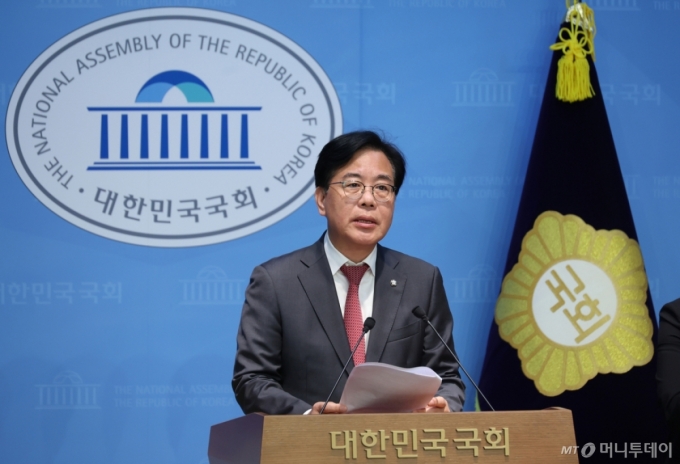 송언석 국민의힘 의원이 12일 서울 여의도 국회 소통관에서 원내대표 선거 출마 기자회견을 하고 있다. 2025.06.12. /사진=뉴시스 /사진=고승민 |