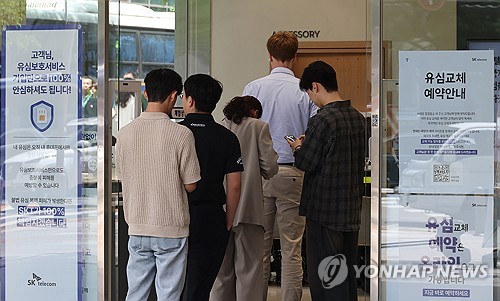 SKT 해킹사태 한달, 대리점 앞에 줄 선 고객 |