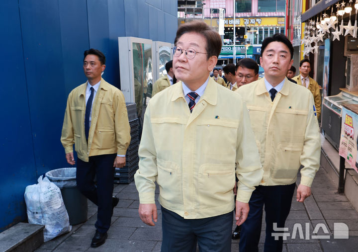 당초 계획에 없던 일정으로 이 대통령은 서울 한강홍수통제소에서 열린 수해 대비 현장 점검 회의를 마치고 용산 대통령실로 복귀하는 길에 참사 현장으로 향했다.