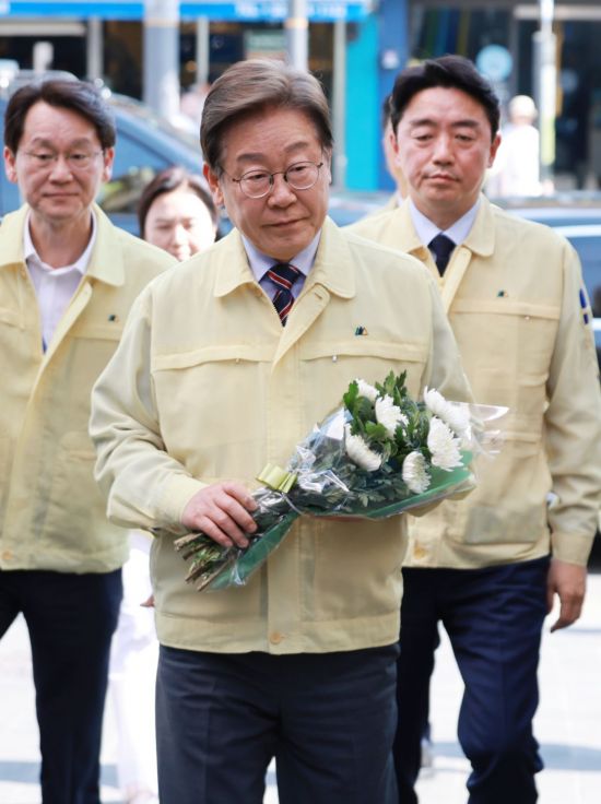 이후 이 대통령은 이태원 참사 현장을 찾아 참배했다. 이 대통령은 참모진과 참사 현장을 찾아 국화꽃을 헌화하고 묵념했다.