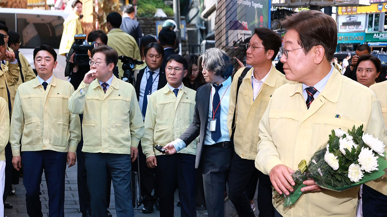 강 대변인은 "이 대통령은 한강 홍수통제소를 점검한 후 이태원 참사 현장 참배를 긴급 결정했다"며 "참모진과 함께 참사 현장을 찾아 국화꽃을 헌화하고 묵념하며 한참을 머물렀다"고 말했습니다.