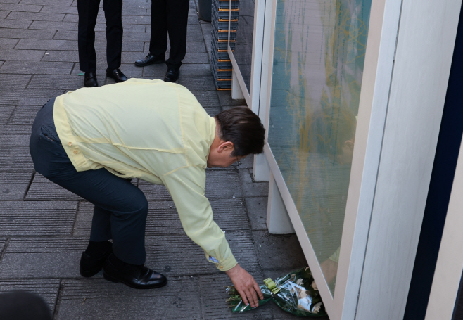 이 대통령은 이날 오후 이태원 참사 현장인 '10·29 기억과 안전의 길'을 찾아 헌화하고 묵념했다.