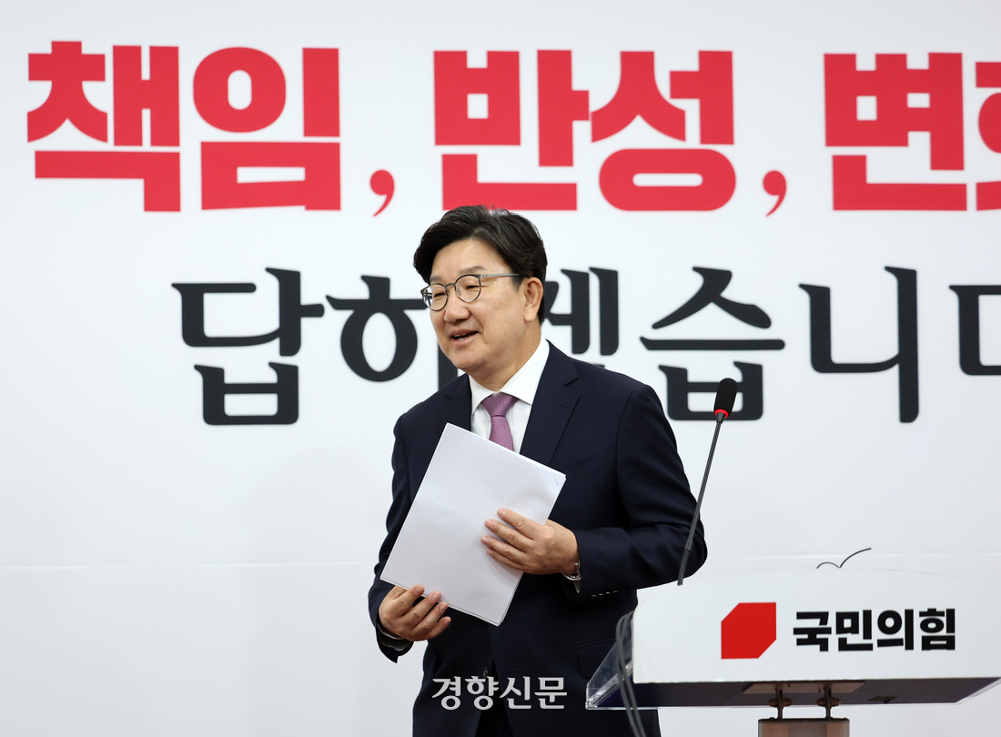 권 원내대표는 지난해 12월12일 전임 추경호 원내대표 사퇴 이후 치러진 경선에서 당선됐다. 당의 탄핵 반대 당론 채택을 주도했다. 친윤계 권영세 비상대책위원장과 함께 윤 전 대통령 내란우두머리 혐의를 수사하는 경찰과 고위공직자범죄수사처, 탄핵심판을 심리한 헌법재판소 공세에 앞장섰다. 21대 대선 패배와 후보 교체 파동 책임론이 제기되자 6개월 만에 직을 내려놓게 됐다. 국민의힘은 오는 16일 의원총회를 열고 새 원내대표를 선출한다.