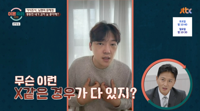 아내는 남편이 연애를 쉬던 시기를 노려 고백을 했다고. 남편은 “무슨 이런 X같은 경우가 다 있지? 네가 감히 나를 좋아해? 내가 그렇게 하수로 보이나?”라고 말해 모두를 충격에 빠지게 만들었다.남편은 “여자가 100kg가 넘는게 말이 되나? 뚱뚱하고 루저인 이미지가 크게 박혔다”라고 막말을 했다.