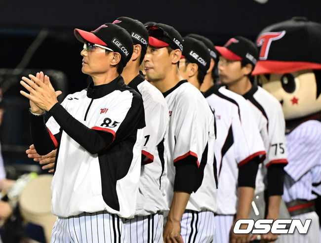 [OSEN=잠실, 지형준 기자] 프로야구 LG 트윈스가SSG 랜더스 상대로 이틀 연속 역전승을 거두며 1위 자리를 지켰다.LG는 12일 서울 잠실구장에서 열린 2025 KBO리그SSG와 시즌 12차전 맞대결에서 7-4로 승리했다. LG는 2위 한화와 승차를 0.5경기 차이로 1위를 지켜냈다.박동원이 대타로 나와 2타점 역전 결승 2루타로 해결사가 됐다.선발 투수 치리노스는 5⅔이닝 9피안타 2볼넷 5탈삼진 4실점으로 승리 투수가 됐다. 시즌 7승째를 기록했다.경기를 마치고 LG 염경엽 감독이 선수들에게 박수를 보내고 있다. 2025.06.12 /jpnews@osen.co.kr |