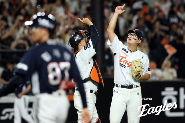 박상원(1이닝), 김범수(0이닝), 주현상(1이닝), 한승혁(⅔이닝), 김서현(1⅓이닝)으로 이어진 불펜도 4이닝 무실점을 합작하며 1점차 승리를 완성했다. 주현상이 시즌 첫 승을 올렸고, 한승혁이 10홀드째. 마무리 김서현이 8회 2사 만루 위기에 나와 제이크 케이브를 2루 땅볼 처리하며 상황을 정리했다. 이어 9회 1사 2,3루 위기를 자초했지만 정수빈과 오명진을 연이어 슬라이더로 헛스윙 삼진 잡고 천신만고 끝에 경기를 끝냈다. 시즌 18세이브째.