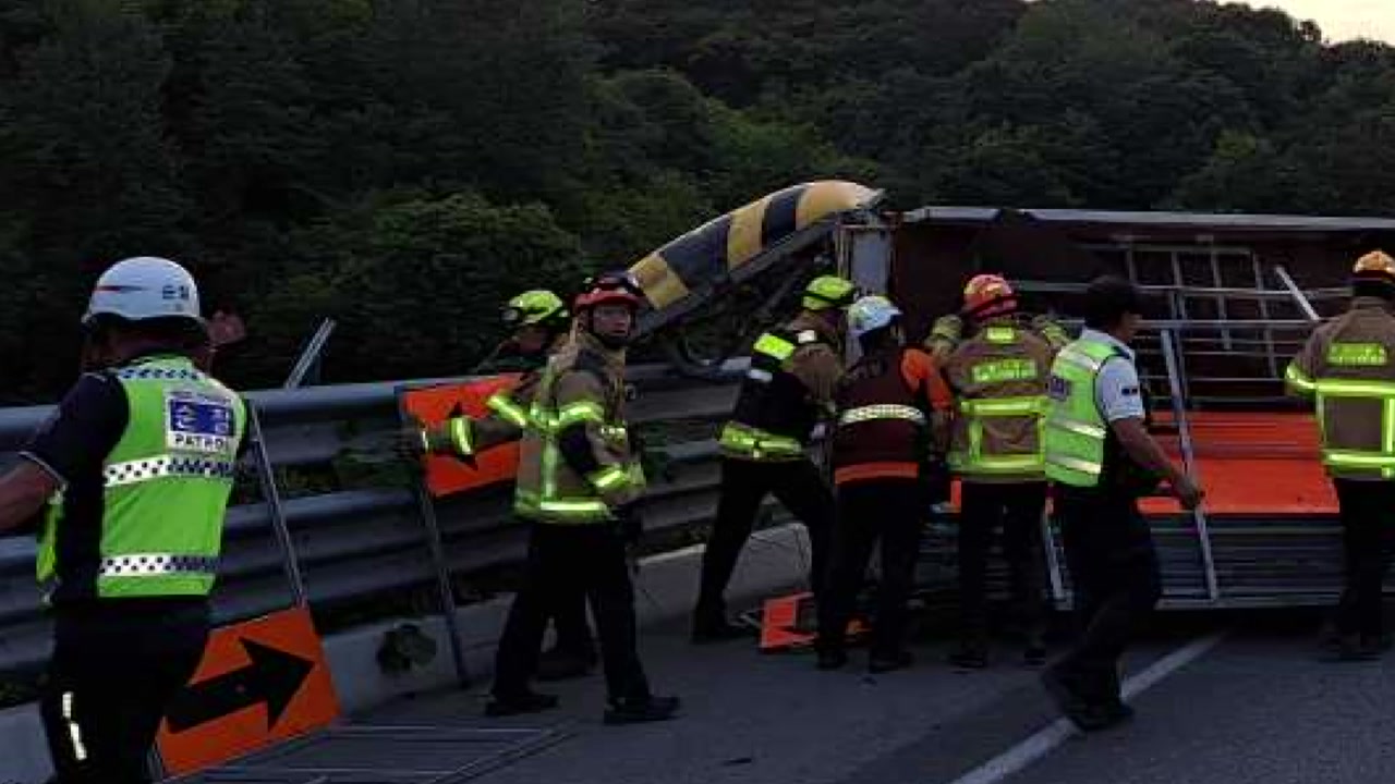 어제(12일) 저녁 7시 14분쯤 강원도 홍천군 북방면 중앙고속도로 대구 방향 하행선에서 2.5t 트럭이 넘어졌습니다.