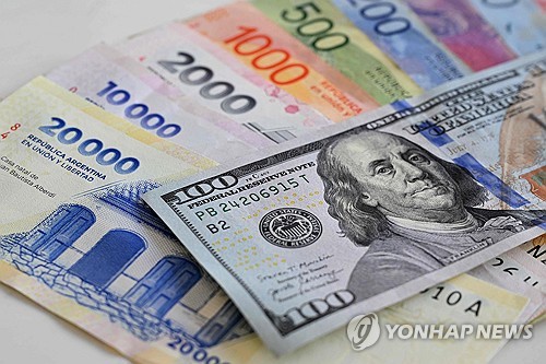 아르헨티나 페소화 지폐와 미국 달러 지폐 |