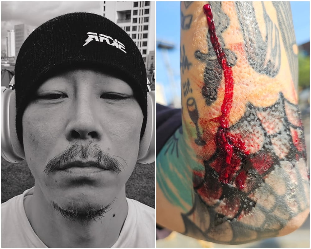 12일 바스코는 자신의 계정을 통해 "내 문신 아스팔트 사포로 다 갈아버림..."이라는 글과 함께 사진을 게재했다.