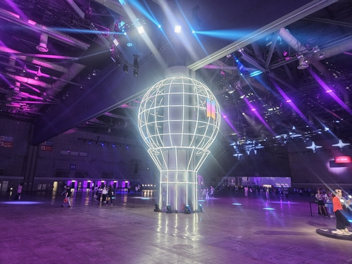 13일 오전 경기도 고양 킨텍스 제2전시장이 방탄소년단을 상징하는 색상인 보라색으로 물들었다.