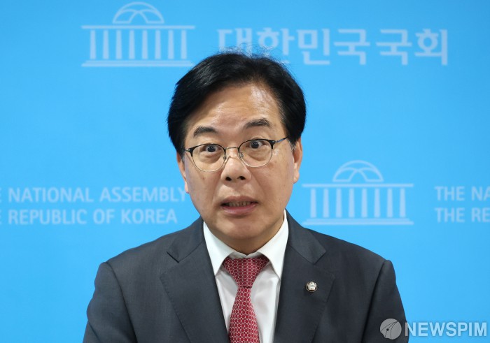 [서울=뉴스핌] 김학선 기자 = 김성원 국민의힘 의원이 12일 오전 국회 소통관에서 원내대표 출마 선언 기자회견을 하고 있다. 2025.06.12 yooksa@newspim.com |