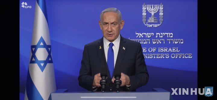 [텔아비브=신화/뉴시스] 베냐민 네타냐후 이스라엘 총리가 13일(현지 시간) 텔아비브에서 이란 타격에 대해 화상 연설을 하고 있다. 네타냐후 총리는 “현재 진행 중인 '라이징 라이언' 작전의 목표는 이란의 핵 인프라, 탄도미사일 공장, 군사 역량을 타격하는 것”이라며 “이는 필요한 만큼 계속될 것”이라고 밝혔다. 이스라엘 카츠 국방장관은 이스라엘이 이란에 대한 '선제 타격'을 개시했다고 발표했다. 2025.06.13. |