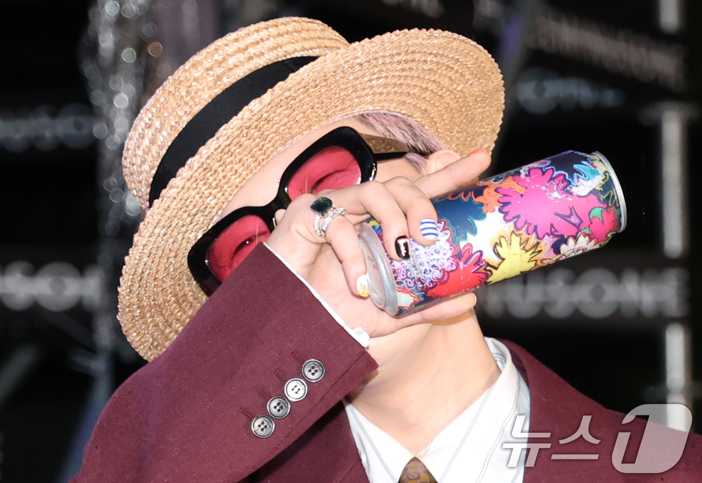 빅뱅 지드래곤(GD,권지용)이 13일 오후 서울 용산구 그랜드 하얏트 서울 호텔에서 열린 '피스마이너스원 프리미엄 하이볼 론칭 파티-더 시그널(THE SIGNAL)' 참석해 레드카펫을 밟고 있다. 2025.6.13/뉴스1 ⓒ News1 권현진 기자 |