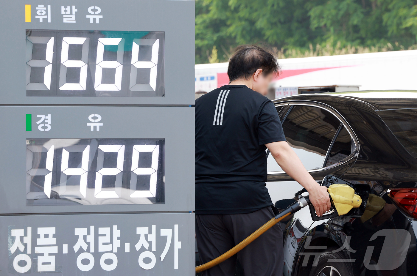 전국 주유소 기름값 평균 가격이 3주 연속 하락한 가운데 1일 서울 서초구 만남의광장 휴게소 내 주유소에 휘발유와 경유 가격이 표시되어 있다. 2025.6.1/뉴스1 ⓒ News1 김진환 기자 |