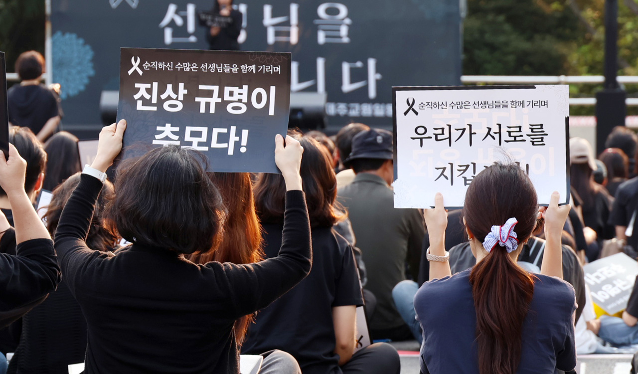 제주도 중학교에서 교사가 사망한 사건과 관련해 교원단체들이 대규모 집회를 열고, 철저한 진상 규명과 고인에 대한 순직 인정을 촉구했습니다.