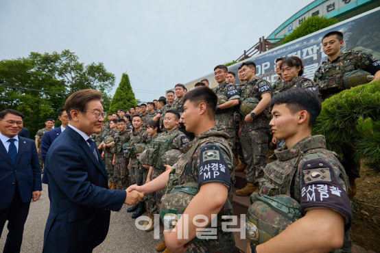 지난 13일 경기 연천 전방부대를 방문한 이재명 대통령이 군 장병들을 격려하고 있다. (사진=이재명 대통령 페이스북) |