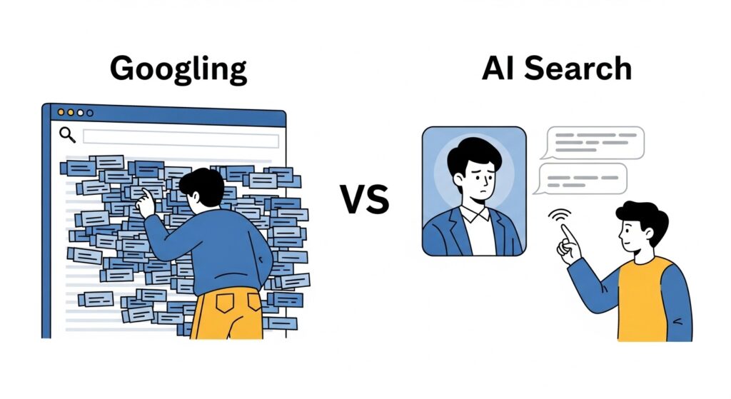 새로운 검색의 핵심은 더 이상 '링크'가 아니라 'AI 요약'이다. 예전엔 구글이 수많은 링크를 보여주며 "여기서 알아서 찾아가세요"였다면, 이제 AI는 인터넷 전체를 뒤져서 완성된 답을 바로 제공한다. 사용자는 더 이상 여러 사이트를 클릭할 필요가 없어졌다."20대 커플이 주말에 부산에서 데이트할 만한 곳 있나? 예산은 15만원 정도야" 이렇게 물으면, AI가 온갖 블로그와 여행 사이트 정보를 수집해서 맞춤형 답변을 만들어준다. 사용자는 만족스러운 답을 얻었으니 굳이 원본 사이트들을 방문할 이유가 없다.