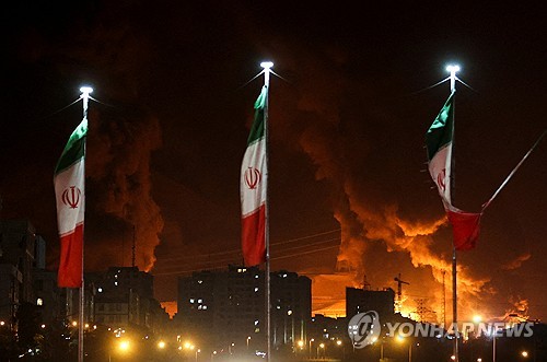 이스라엘의 공습으로 연기가 치솟는 이란의 원유 저장소 |