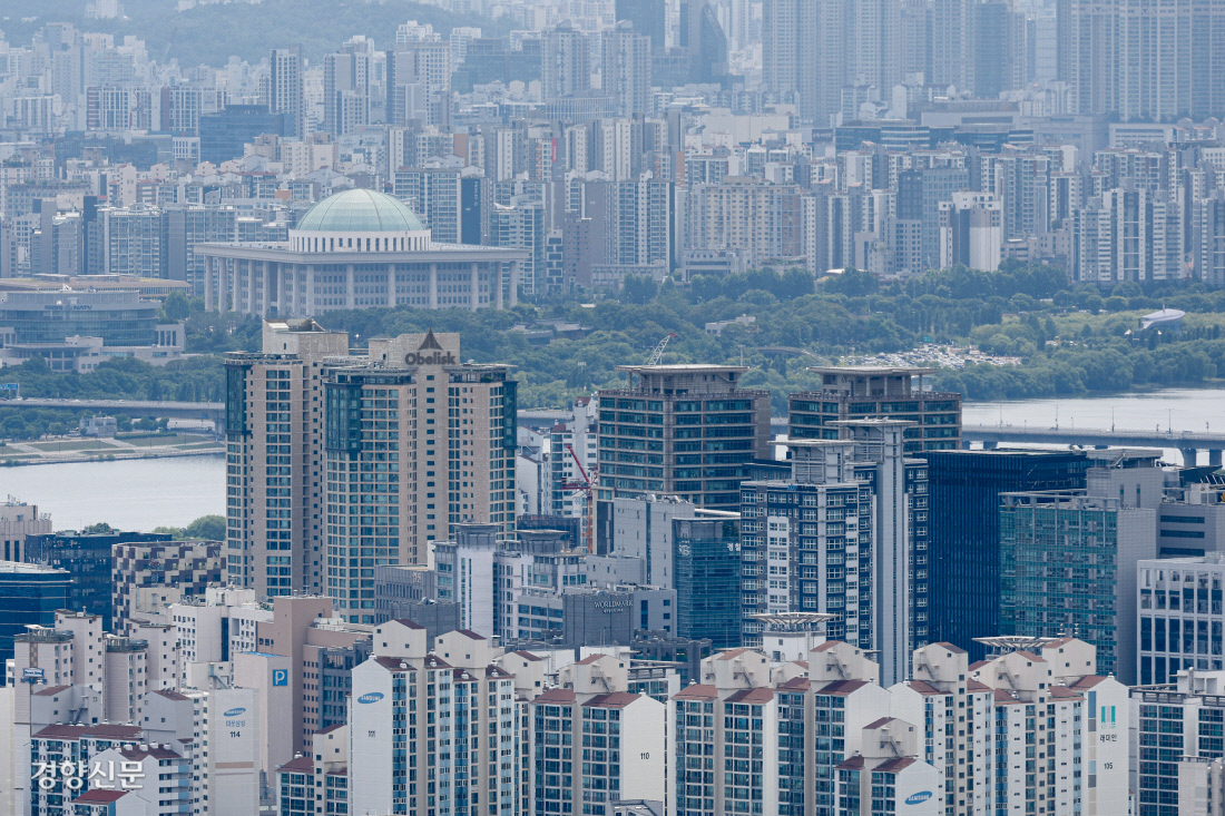최근 집값 상승세가 서울 강남 3구(강남·서초·송파)와 마용성(마포·용산·성동)을 넘어 노도강(노원·도봉·강북) 등 서울 전역으로 확산하고 있다. 15일 서울 남산에서 바라본 마포와 영등포 일대에 아파트 단지가 밀집돼 있다. 문재원 기자 |