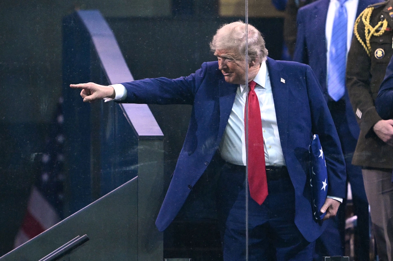 도널드 트럼프 미국 대통령이 지난 14일(현지시간 워싱턴 DC에서 열린 육군 250주년 기념 퍼레이드 후 육군 골든 나이츠 대원이 준 성조기를 들고있다. [AFP] |