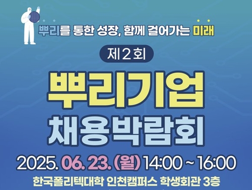 (인천=연합뉴스) 신민재 기자 = 인천시와 인천테크노파크(인천TP)는 고용노동부와 공동으로 오는 23일 한국폴리텍대학 인천캠퍼스에서 '2025년 제2회 뿌리기업 채용박람회'를 연다고 16일 밝혔다.