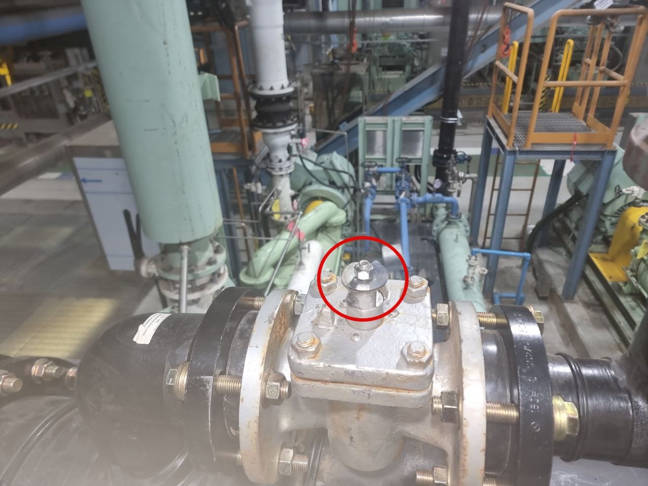 태안화력 김충현 비정규직 노동자 사망사고 대책위원회(대책위)는 김씨가 작업했던 공작물이 쓰이는 설비 사진을 10일 최초 공개했다. 김씨가 작업하던 ‘CVP 벤트 밸브 핸들’은 태안화력 내 10호기 발전설비 제어 장비의 밸브를 여닫는 손잡이 부품으로, 공작물의 구멍이 있는 부분을 제어 장비 밸브 부위(빨간색 원)에 걸고 돌리는 방식이다. [연합] |
