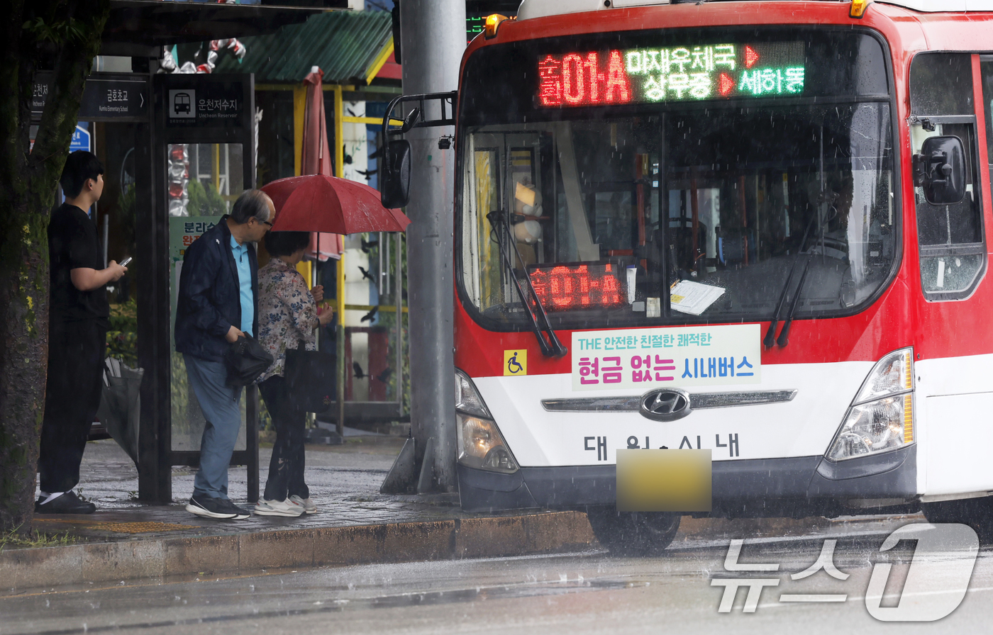 (광주=뉴스1) 김태성 기자 = 시내버스 파업이 9일째인 16일 광주시의 비상수송대책이 발표된가운데 서구 운천저수지 승강장에서 시민들이 버스를 타고 있다. 2025.6.16/뉴스1