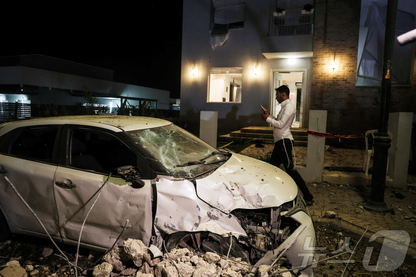 (자브디엘 로이터=뉴스1) 강민경 기자 = 이스라엘 남부 자브디엘이 15일 이란의 보복 공격을 받았다. 미사일 공격으로 자동차가 파괴된 모습이 보인다. 2025.6.15 ⓒ 로이터=뉴스1