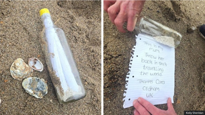유리병을 발견한 켈리 셰리던 씨 가족은 쪽지를 읽은 뒤 병을 다시 바다에 띄우는 영상을 촬영해 SNS(소셜미디어)에 공유했다. 게시글에는 "카라 어머니, 즐거운 여행 되세요"라고 적었다. 이 병은 카라 멜리아라는 여성이 하루 전에 바다에 던진 것이었다.