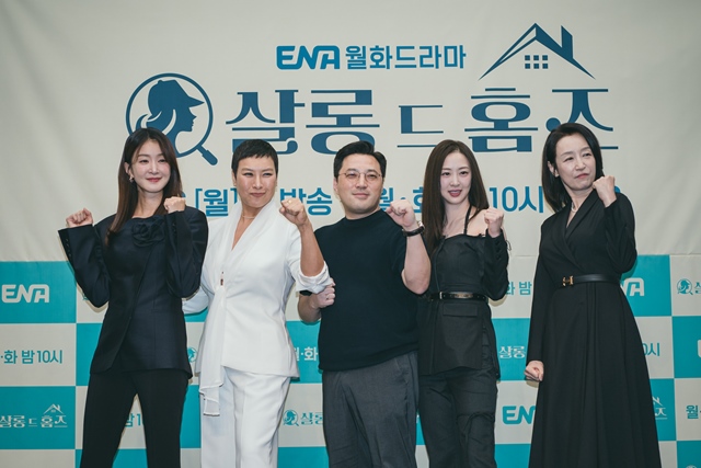 ENA 새 월화드라마 '살롱 드 홈즈'가 16일 첫 방송된다. 이에 배우 이시영 정영주, 민진기 감독, 김다솜 남기애(왼쪽부터)가 방송 전 제작발표회를 열고 다양한 이야기를 전했다. /ENA |