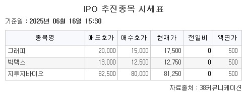 상장 예비심사 승인 종목으로 3D프린팅 소재 및 솔루션 전문업체 그래피와 장기 지속형 주사제 및 의약품 개발기업 지투지바이오가 보합으로 거래를 마쳤다.