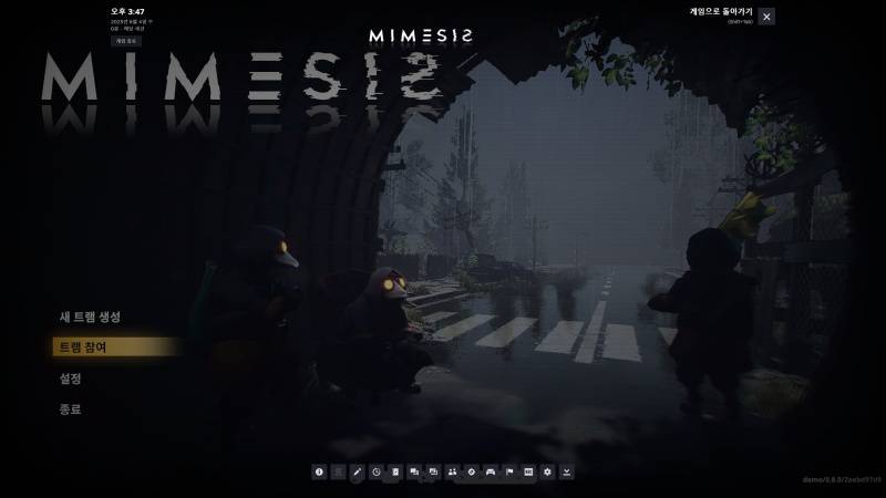 4인이 협동해서 생존해야 하는 공포 게임 ‘미메시스’다. 이 게임은 트램을 타고 위험한 지역을 탈출해야 하는 주인공이 트램을 수리하기 위해 필요한 자원들을 수집하는 생존 장르다. 총 3번의 라운드로 진행되는데, 총 200 달러 상당의 자원을 수집하면 오염 지역을 탈출하게 되며, 중간 중간 몬스터들의 습격을 피해야 하고, 모든 길이 미로처럼 만들어져 있기 때문에, 자원을 모아서 트램까지 복귀하는 것이 쉽지 않다.