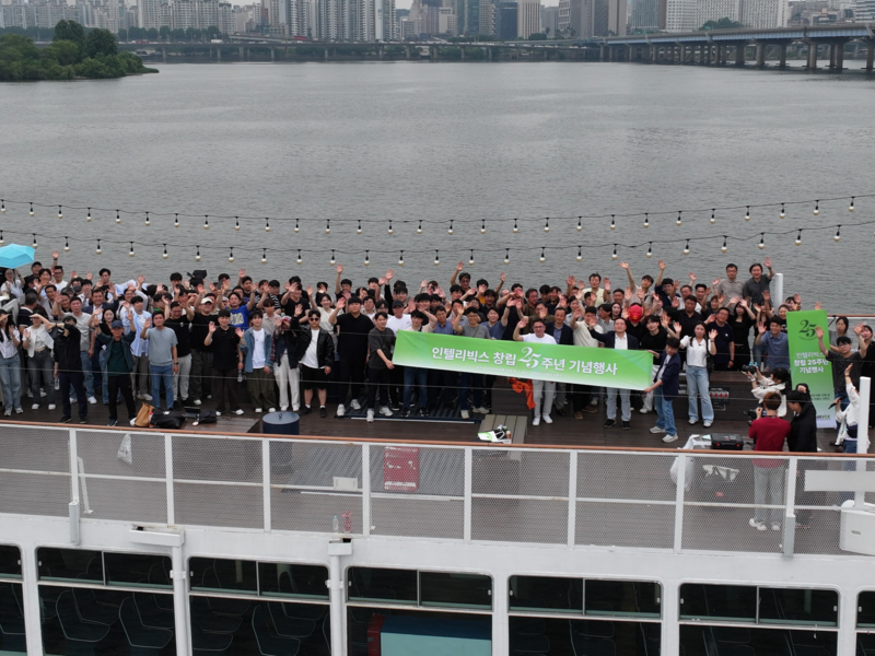 | ◇ 인텔리빅스 임직원들이 서울 여의도 크루즈에서 창립25주년 기념행사를 진행한 뒤 기념 사진을 촬영하고 있다. |