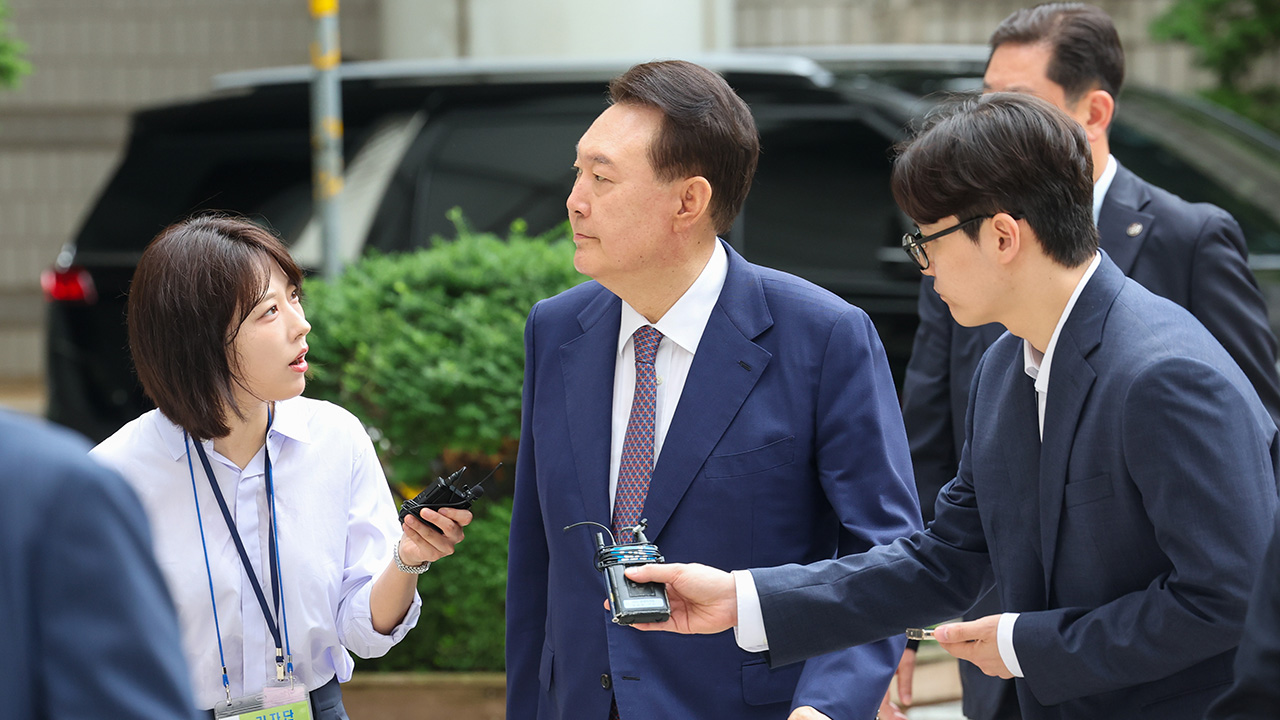 ▲ 윤석열 전 대통령이 16일 서울 서초구 서울중앙지방법원에서 열린 내란 우두머리 혐의·직권남용 권리행사 방해 혐의 사건 7차 공판에 출석하고 있다.