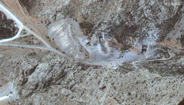 15일(현지시간) 플래닛 랩스(Planet Labs)가 공개한 이 위성 사진은 같은 날 이란 서부 케르만샤에 위치한 미사일 시설의 손상된 터널 입구를 근접 촬영한 모습. [사진=AFP·연합뉴스] |