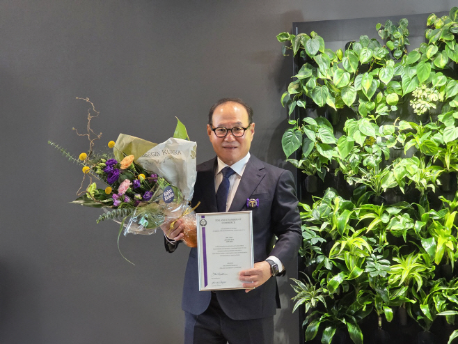 김진두 아진P&P 대표가 지난 12일 핀란드 경제고용부 '공로훈장'을 수상하고 기념촬영을 하고 있다. |