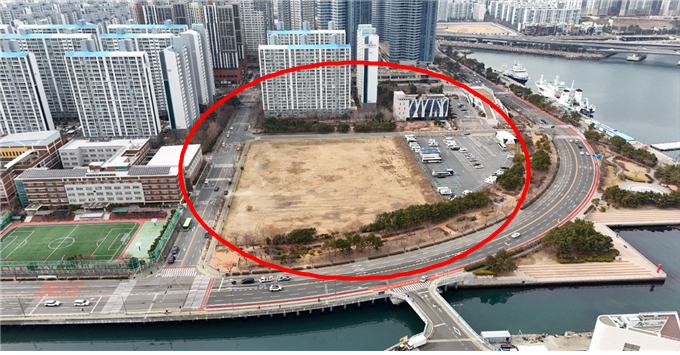 금융자사고 우선협상대상 부지로 선정된 부산 남구 용호동 960번지 일대 전경. 부산시 제공 |