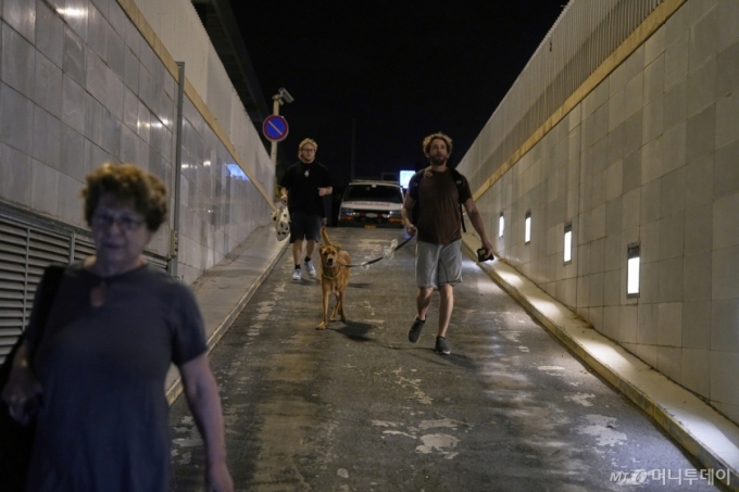 [텔아비브=AP/뉴시스] 17일(현지 시간) 이스라엘 텔아비브에서 이란의 미사일 공습경보가 울리자 주민들이 주차장으로 대피하고 있다. 2025.06.17. /사진=민경찬 |