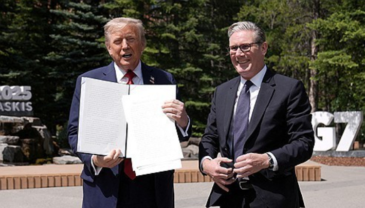 도널드 트럼프 미국 대통령이 16일(현지시간) 키어 스타머 영국 총리와의 회담에서 영국과의 무역협정에 관한 행정명령에 서명했다. 이는 지난 4월 9일 상호 관세를 90일간 유예한 이후 첫 공식 무역 합의다.