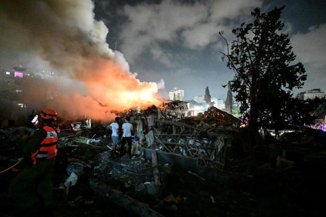 15일(현지시간) 이란의 미사일 공격 이후 중앙 이스라엘의 한 피격 지점에서 발생한 화재를 현지 주민들이 지켜보고 있다. [사진=로이터·연합뉴스] |