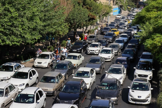 이란과 이스라엘 간 무력 충돌 사흘 째인 15일(현지시간) 이란 수도 테헤란 서부의 주요 도로에서 도시를 빠져 나가기 위해 차량들이 줄지어 서있다. /AFPBBNews=뉴스1 |