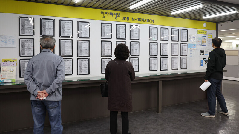 중년·고령층 시민들이 일자리 정보 게시판을 확인하고 있다. 연합뉴스 |