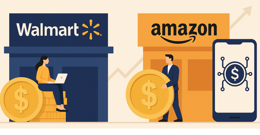 월마트와 아마존이 스테이블코인을 발행해 은행 및 신용카드에 기반한 전통적인 결제 시스템을 대체하는 방안을 검토하고 있다고 월스트리트저널(WSJ)이 보도했다. [챗GPT를 이용해 제작함] |