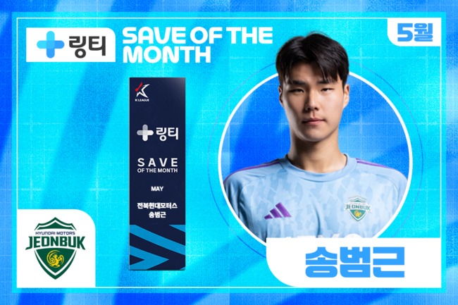 [인터풋볼] 신동훈 기자 = 전북 현대 골키퍼 송범근이 2025시즌 5월 K리그 '의사가 만든 링티 이달의 세이브'를 수상했다.