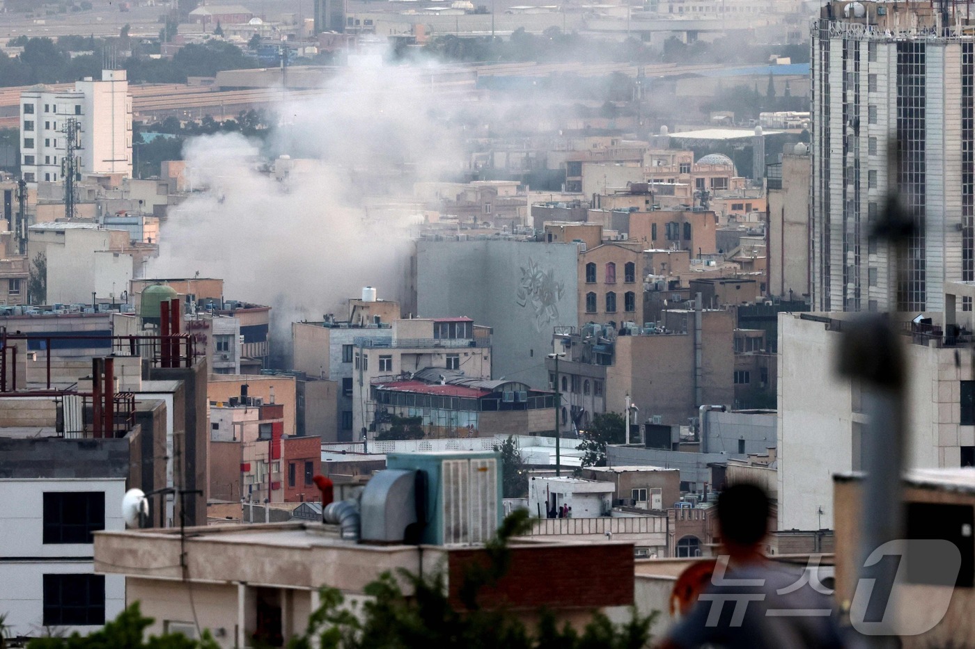 (테헤란 AFP=뉴스1) 김예슬 기자 = 이란과 이스라엘 간 교전이 계속되는 가운데 16일(현지시간) 이란 테헤란 남동쪽에서 이스라엘의 공습으로 연기가 피어오른다. 25.06.16 ⓒ AFP=뉴스1