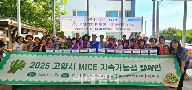 고양컨벤션뷰로(CVB)(이사장 이동환 고양특례시장)가 12일 대화동 행정복지센터 가와지광장에서 ‘2025 고양시 마이스 지속가능성 캠페인’을 진행했다. 이 캠페인은 뷰로가 마이스 목적지로 ESG(환경·사회·지배구조) 중심의 지속가능성 체계를 조성하기 위해 5년째 진행하는 지역 상생 프로그램이다. 캠페인에는 마이스 얼라이언스 회원사, 마이스 육성센터 입주기업, 대화동 주민자치회 등 40여 명이 참여해 지역특산물(열무)로 담근 김치를 취약계층에 전달하는 나눔 활동을 진행했다.