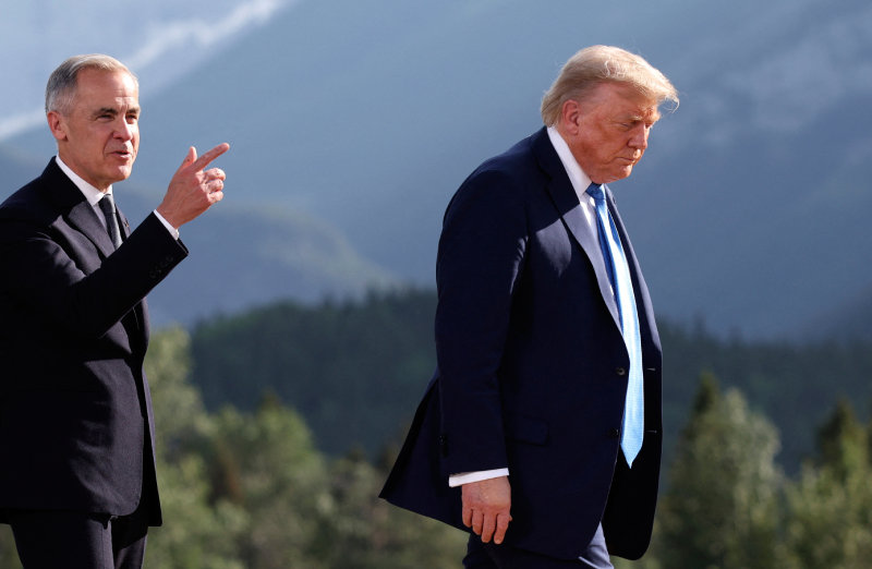G7 참석한 트럼프 “이란 합의해야” 16일(현지 시간) 캐나다 앨버타주 캐내내스키스에서 열린 주요 7개국(G7) 정상회의에서 도널드 트럼프 미국 대통령(오른쪽)과 마크 카니 캐나다 총리가 함께 걷고 있다. 트럼프 대통령은 이날 카니 총리와의 양자회담에서 “이란은 합의해야만 한다. 늦기 전에 즉시 시작해야 한다”고 말했다. 캐내내스키스=AP 뉴시스 |