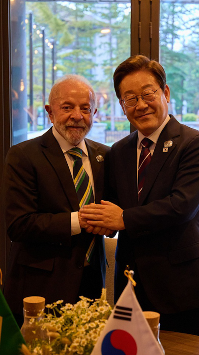 이 대통령은 이날 오전 G7 정상회의가 열리는 캐나다 카나나스키스에서 룰라 대통령과 만났다. 남아공·호주에 이은 세 번째 정상회담이다. 이 대통령은 “룰라 대통령의 리더십 하에 브라질이 ‘글로벌 사우스(global south·남반구 신흥국·개발도상국)’의 핵심국으로 위상을 강화해 나가고 있다”며 “한국은 남미 최대 교역·투자국인 브라질과의 경제협력을 확대해 나가려 한다”고 말했다. 룰라 대통령은 이 대통령의 취임을 축하했고, 이 대통령은 사의를 표했다.