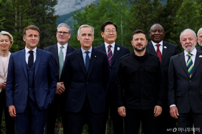 (로이터=뉴스1) = 이재명 대통령이 17일(현지시간) 캐나다 앨버타주 카나나스키스 주요 7개국(G7) 정상회의장에서 의장국 마크 카니 캐나다 총리, 초청국 정상들과 함께 기념 촬영을 하고 있다. ⓒ 로이터=뉴스1 Copyright (C) 뉴스1. All rights reserved. 무단 전재 및 재배포, AI학습 이용 금지. /사진=(로이터=뉴스1) |