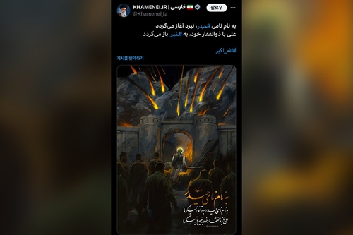 또한 하메네이는 영어 게시물 외에 페르시아어로 "하이다르의 고귀한 이름 아래 전투가 시작됐다"는 글도 올렸다.